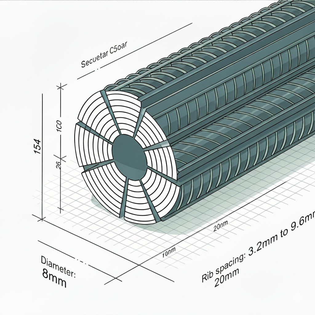 Our 8mm high-tensile deformed rebar is manufactured according to ASTM A615 Grade 60 standards, making it ideal for mesh, light structural reinforcement, beams, slabs, and block work reinforcement. It offers excellent workability while maintaining high strength for dependable structural performance. Provided in standard 40ft factory-cut lengths.